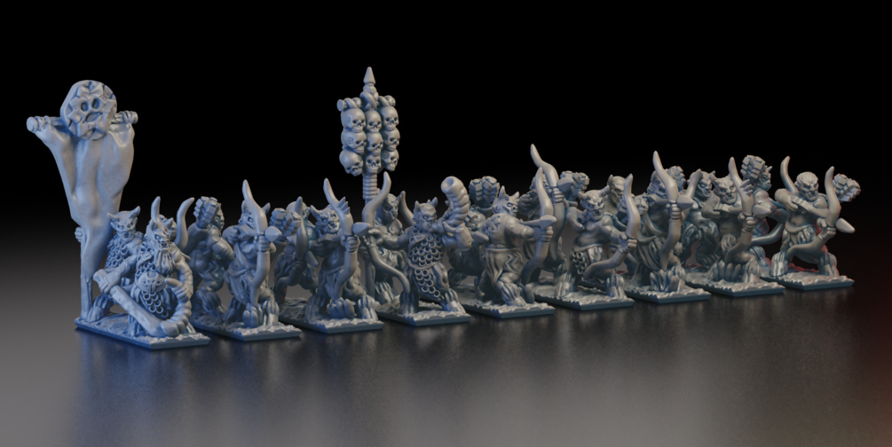 Lesser Beastkin Archers specifically designed for 10mm (Warmaster), can be reasonably scaled from 6mm to 15mm.