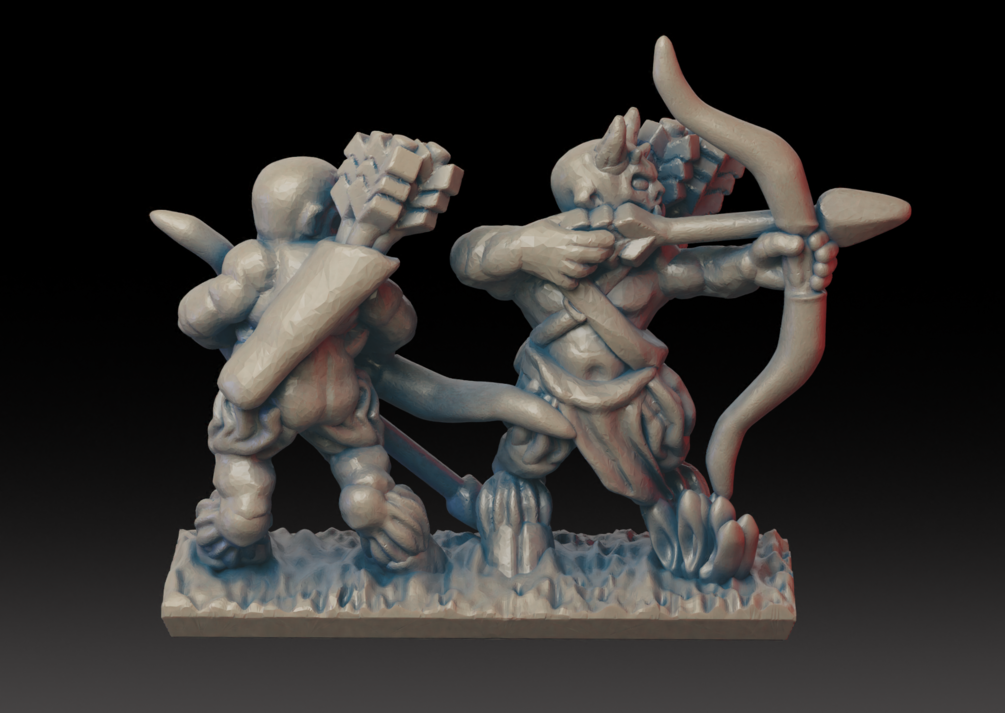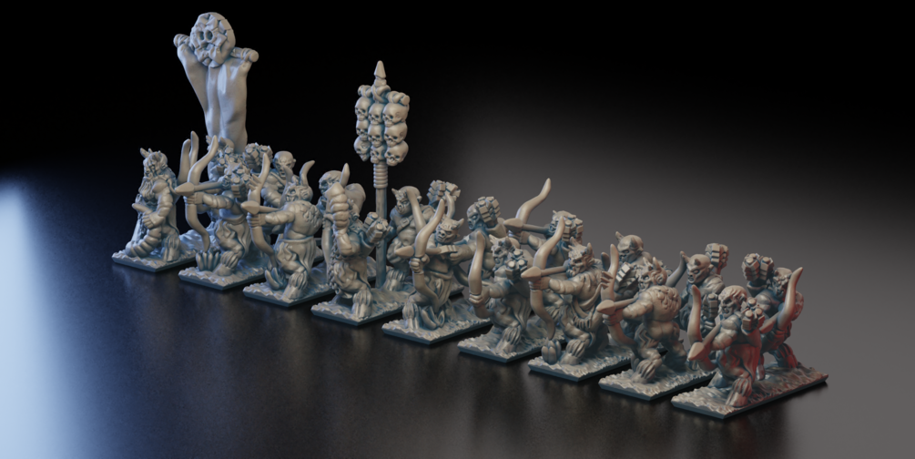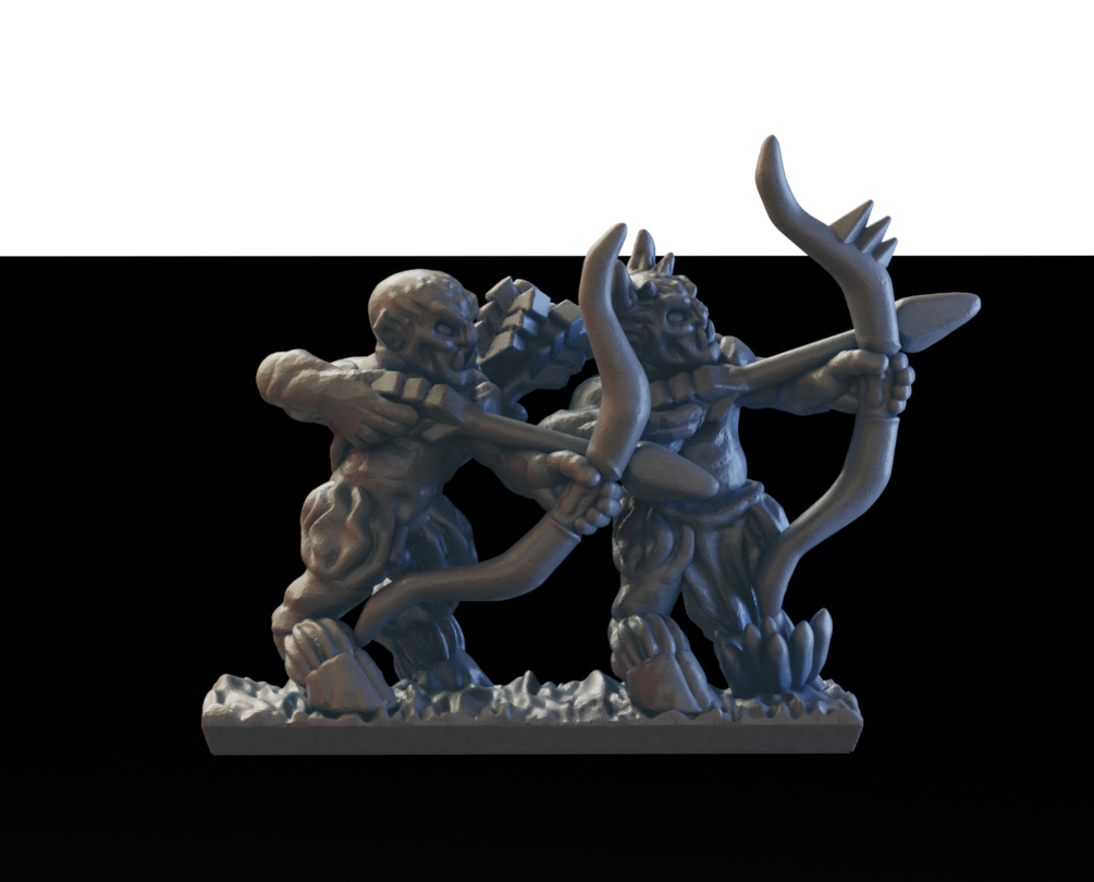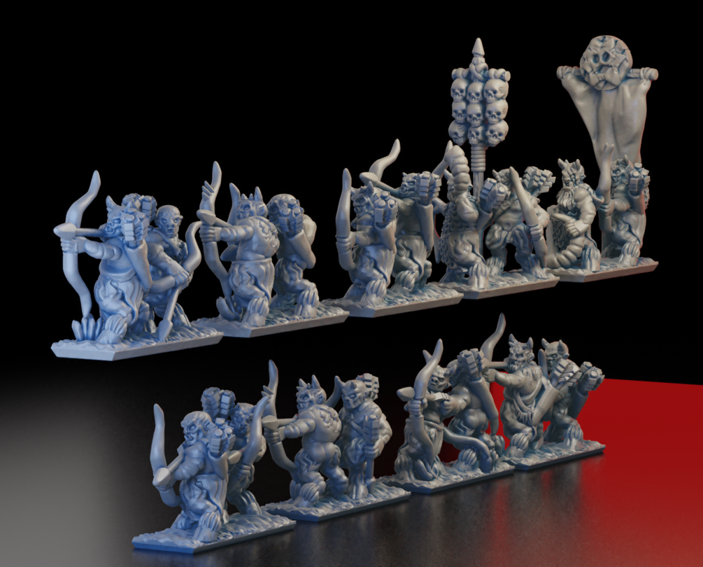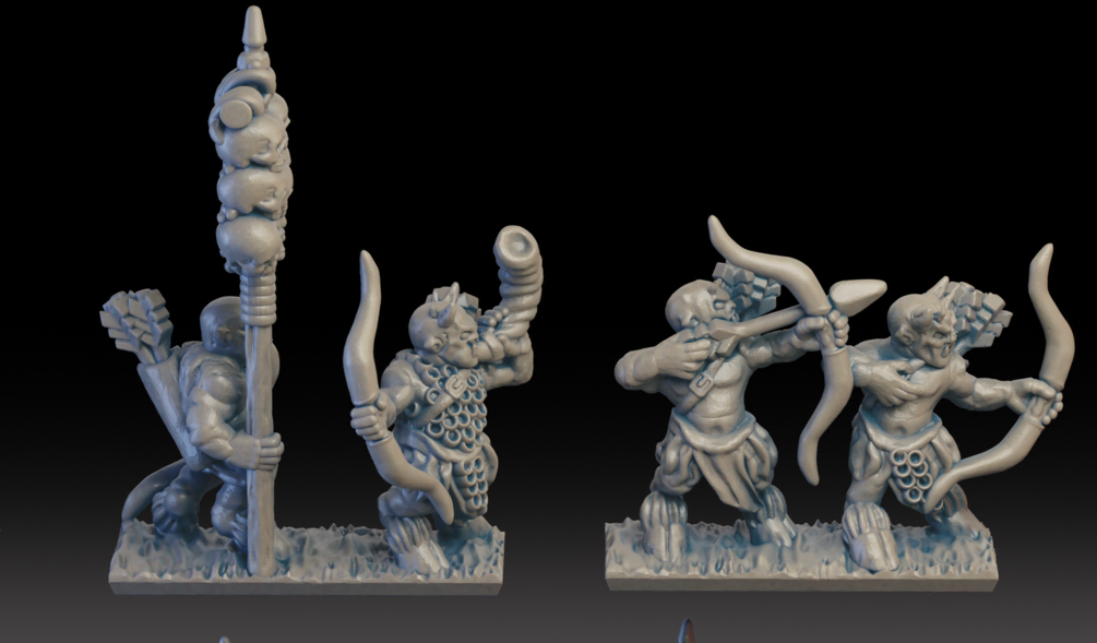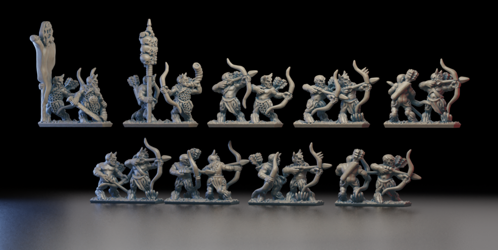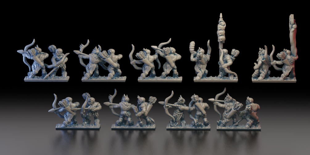 Lesser Beastkin Archers specifically designed for 10mm (Warmaster), can be reasonably scaled from 6mm to 15mm.