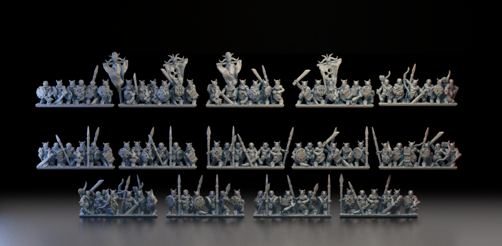 Lesser Beastkin Soldiers specifically designed for 10mm (Warmaster), can be reasonably scaled from 6mm to 15mm.