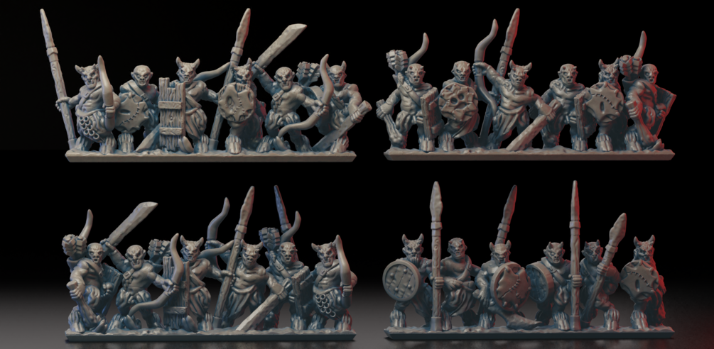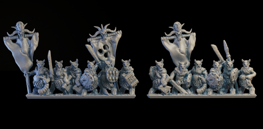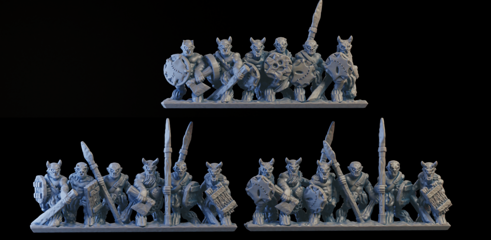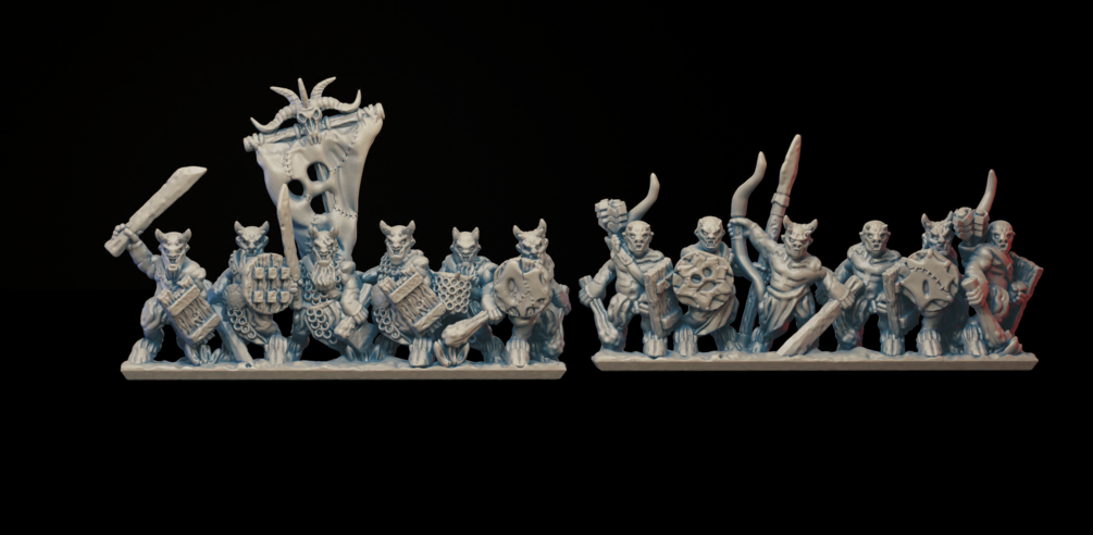 Lesser Beastkin Soldiers specifically designed for 10mm (Warmaster), can be reasonably scaled from 6mm to 15mm.