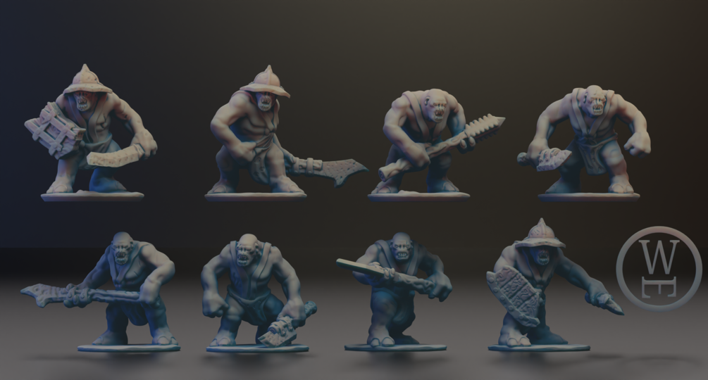 Morghei Trolls designed for 10mm (Warmaster), can be reasonably scaled from 6mm to 15mm.