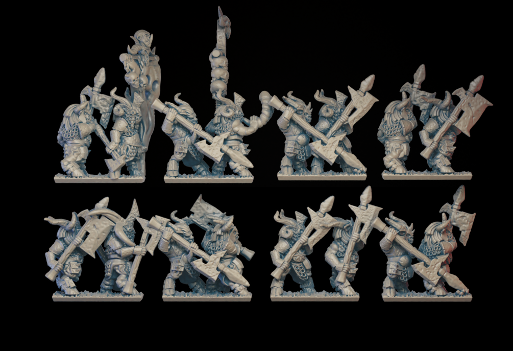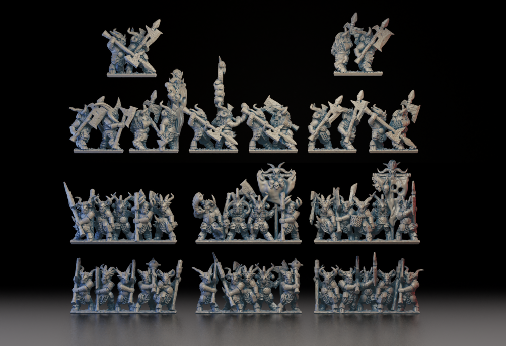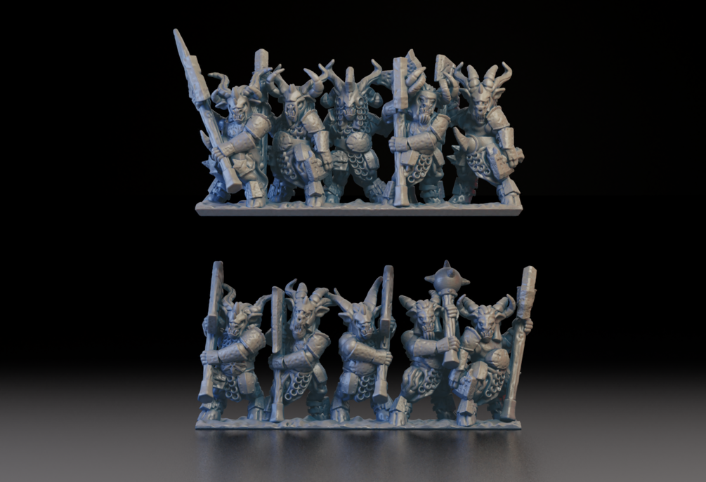 Greater Beastkin Soldiers specifically designed for 10mm (Warmaster), can be reasonably scaled from 6mm to 15mm.